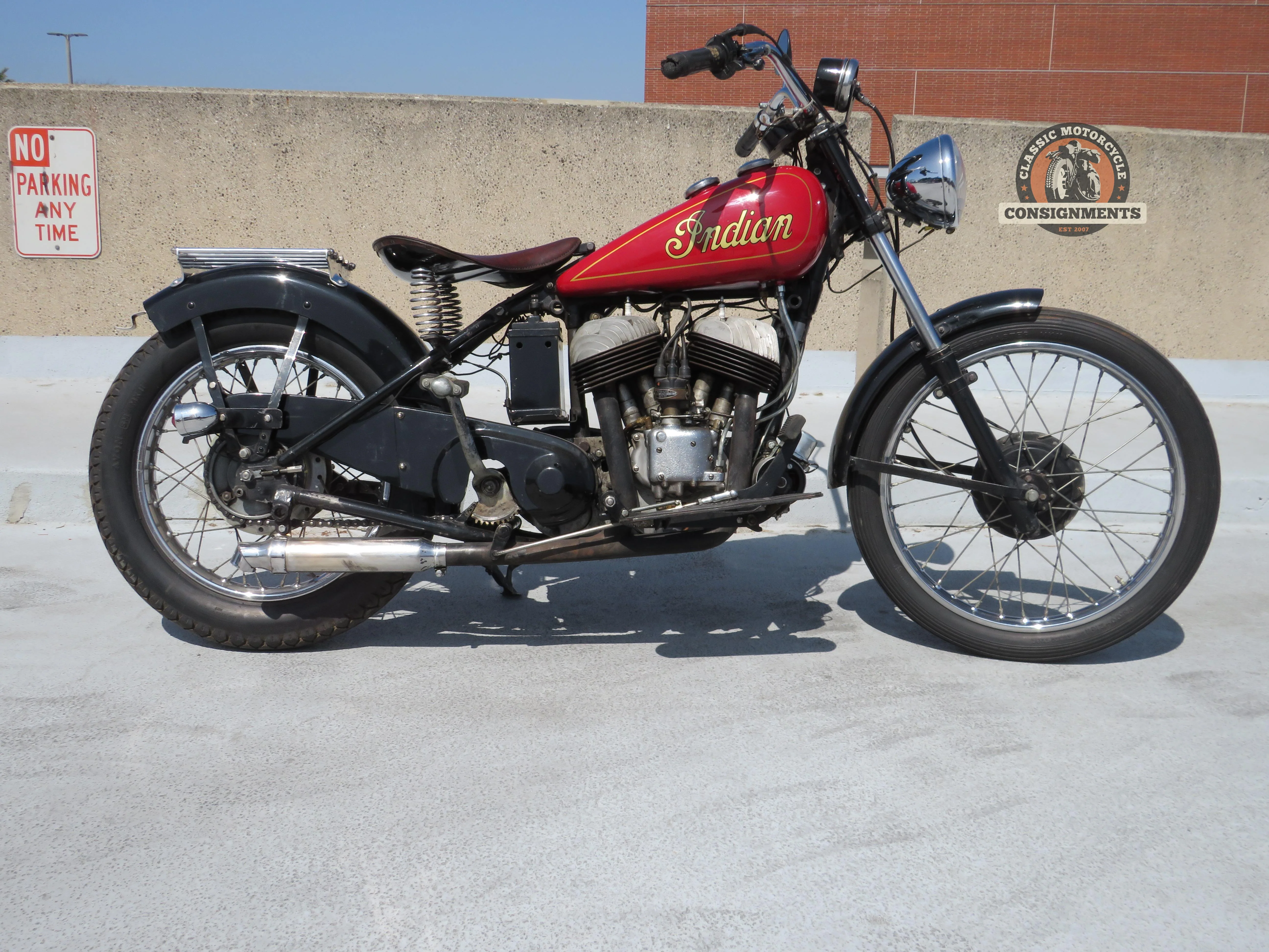 This is a custom built, 1939 Indian Sport Scout 45 inch Bobber. This bike was built by a famous rider/builder Roy Burke in the early 90’s for a young friend to ride AMCA events on the west coast. This Bobber has been in controlled storage for the last 20 years or so and is now offered for sale from the original owner. This motorcycle famously completed many Borrego Springs Winter Road Runs and the Death Vally Road Run in the mid 1980’s appearing at the Borrego Springs Winter Road Run and also at the Death Valley Run in the middle to late 1990’s. This is a custom Indian Sport Scout Bobber. This bike has undergone a complete service and is ready for the next ride.