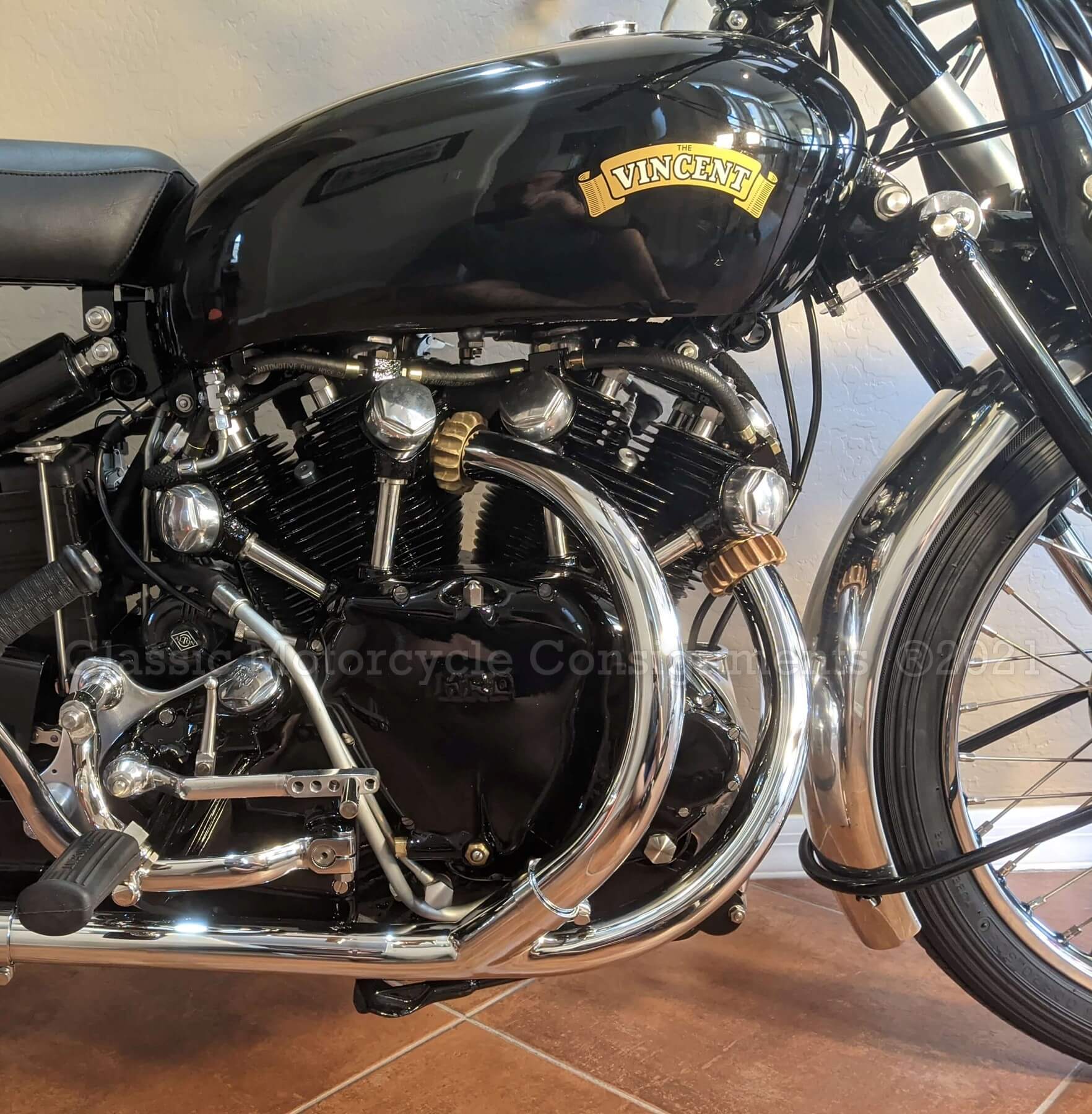 Mechanical: Engine and tranny rebuilt by Terry Prince, the well-known Vincent builder. It was built for reliability and strength and including his special TPV top end.