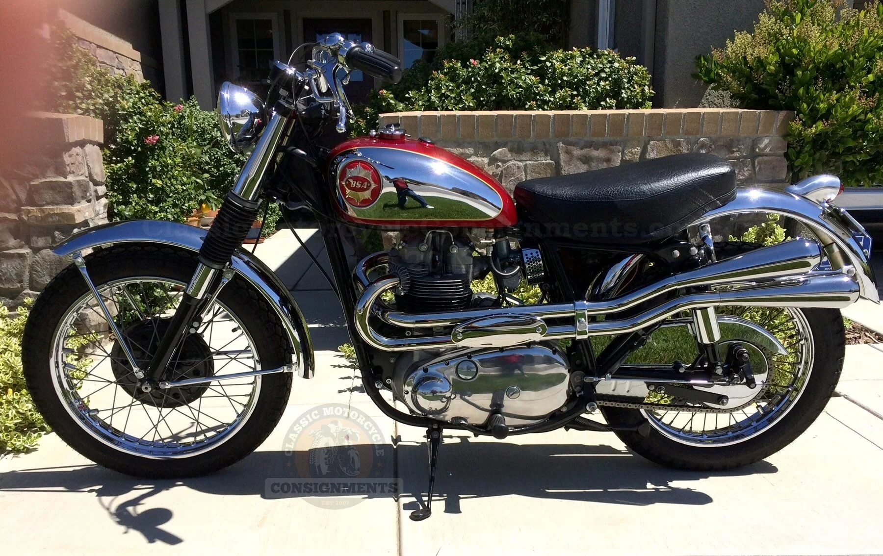 This bike was one of only 16 shipped to Canada. It was sent to Fred Deeley Ltd, Vancouver, on February 28, 1963 and recorded as a “A10 R G Star Scrambler Red”. It is a numbers matching original with a letter verifying the numbers from the Gold Star Owners Club in the UK. The current owner purchased it in Canada in 2009 and finished a total restoration in 2016. It is street legal with original period correct lighting.